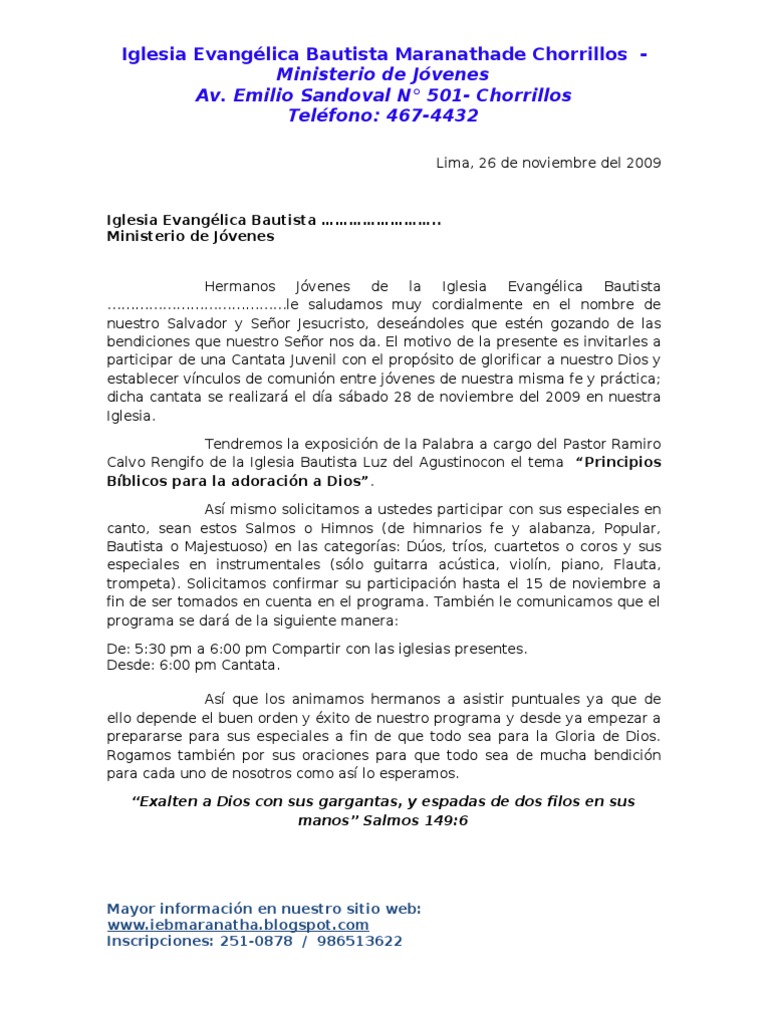 Cantata Juvenil - Carta De Invitación Para Las Iglesias via es.scribd.com